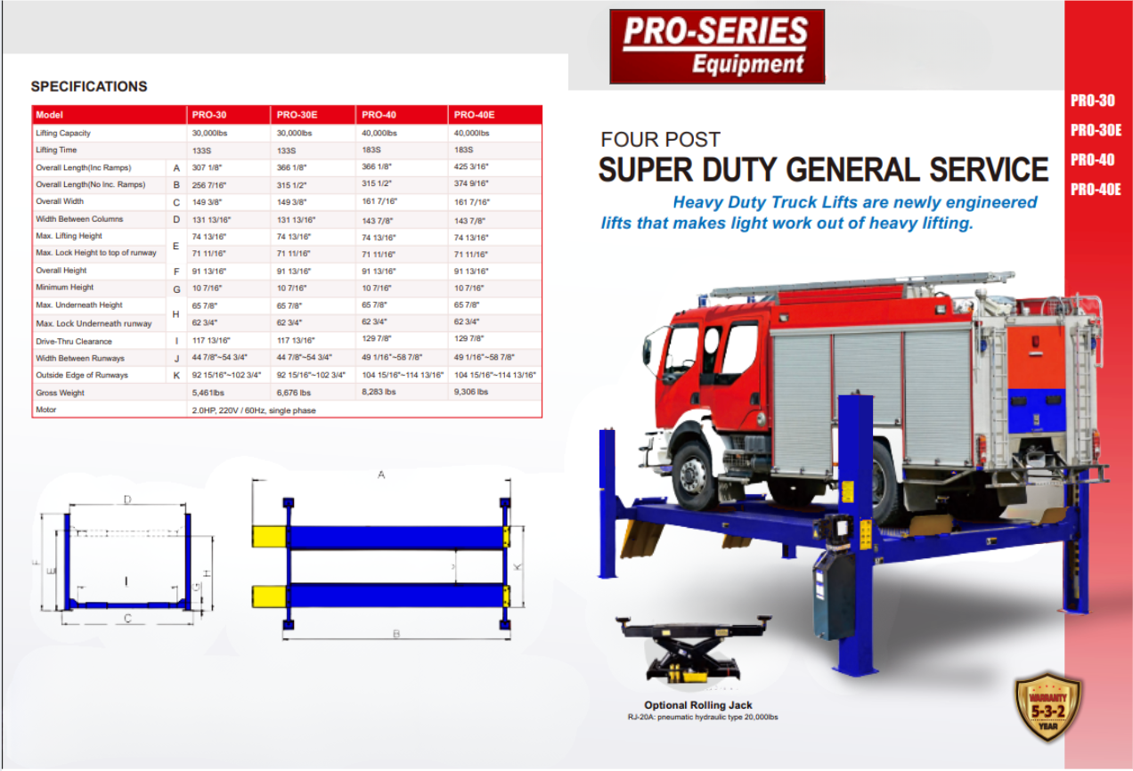 PRO-30 / PRO-40 Heavy-Duty 4-Post Truck Lifts
